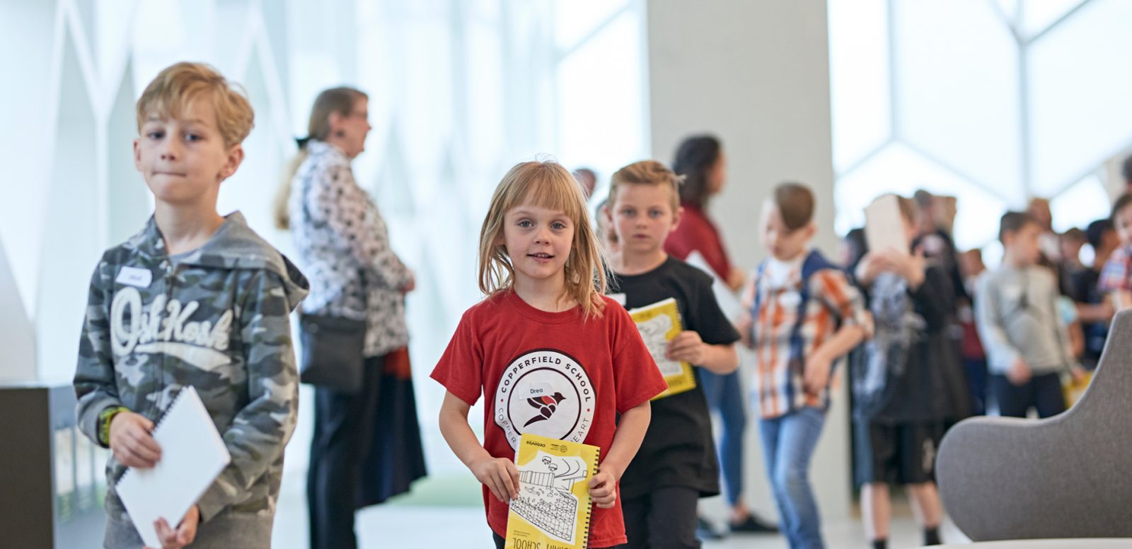 “The Cenovus Classroom is central to the kids’ experience at Library School,” says Anna Dunne-Hussey, Library School Coordinator. “With 240,000 square feet of library spaces to explore each day, it’s amazing to have a place where we can return to share ideas and meet with knowledgeable local community members like Indigenous Elders, city planners, authors, building engineers, and visual artists. Those are just a few of the experts who have turned our classroom into a living library.”