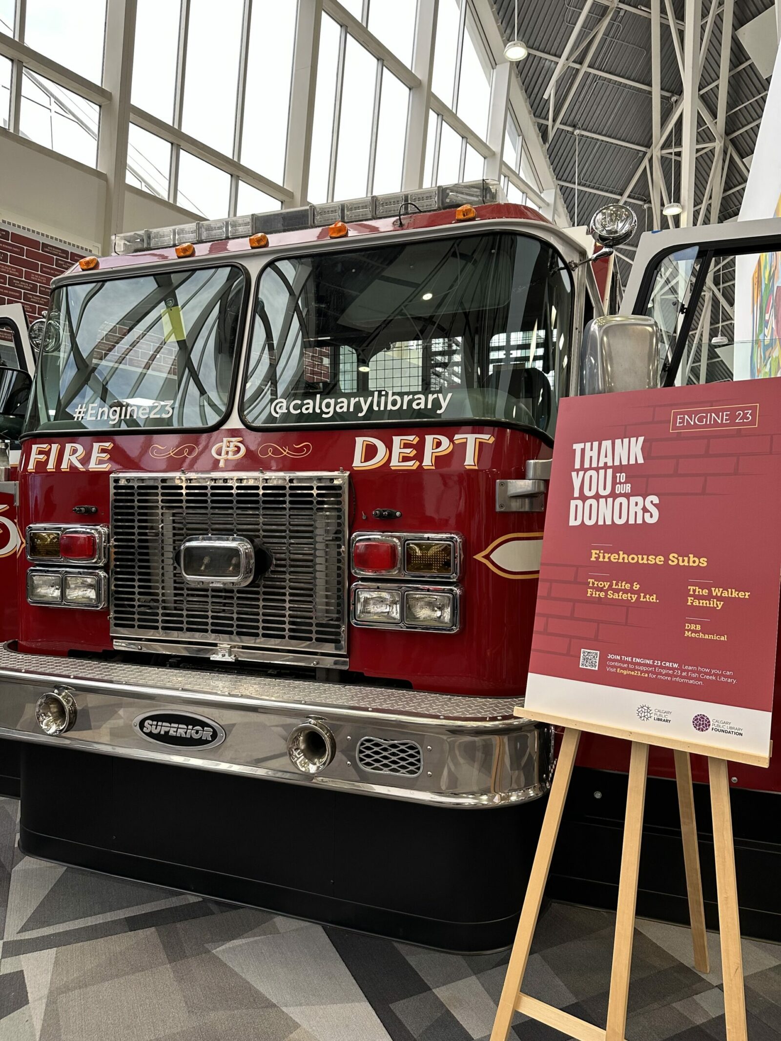 We extend our gratitude to all Library Foundation donors and supporters who helped get a Ladder Up on Literacy. In particular, we thank Firehouse Subs, Troy Life & Fire Safety, the Walker Family, DRB Mechanical, Oxford Properties and Southcentre Mall, and everyone who bought a brick—more than 400 and counting!—in support of Engine 23.