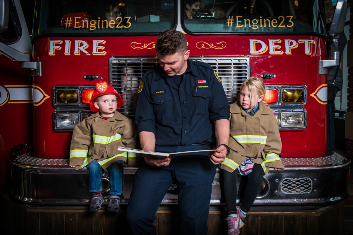 In 2023, the Calgary Public Library Foundation launched its Ladder Up on Literacy: Brick-Buy-Brick Campaign to support rehoming Engine 23 and the advancement of children’s learning and literacy at Fish Creek Library. Engine 23 is a dynamic play structure, encouraging open-ended exploration and interaction. The design aims to improve five important early learning skills: talking for communication, singing for musical expression, reading and writing for literacy, and imaginative play. Additionally, this installation offers valuable opportunities for children to engage with firefighters and gain knowledge about fire safety.