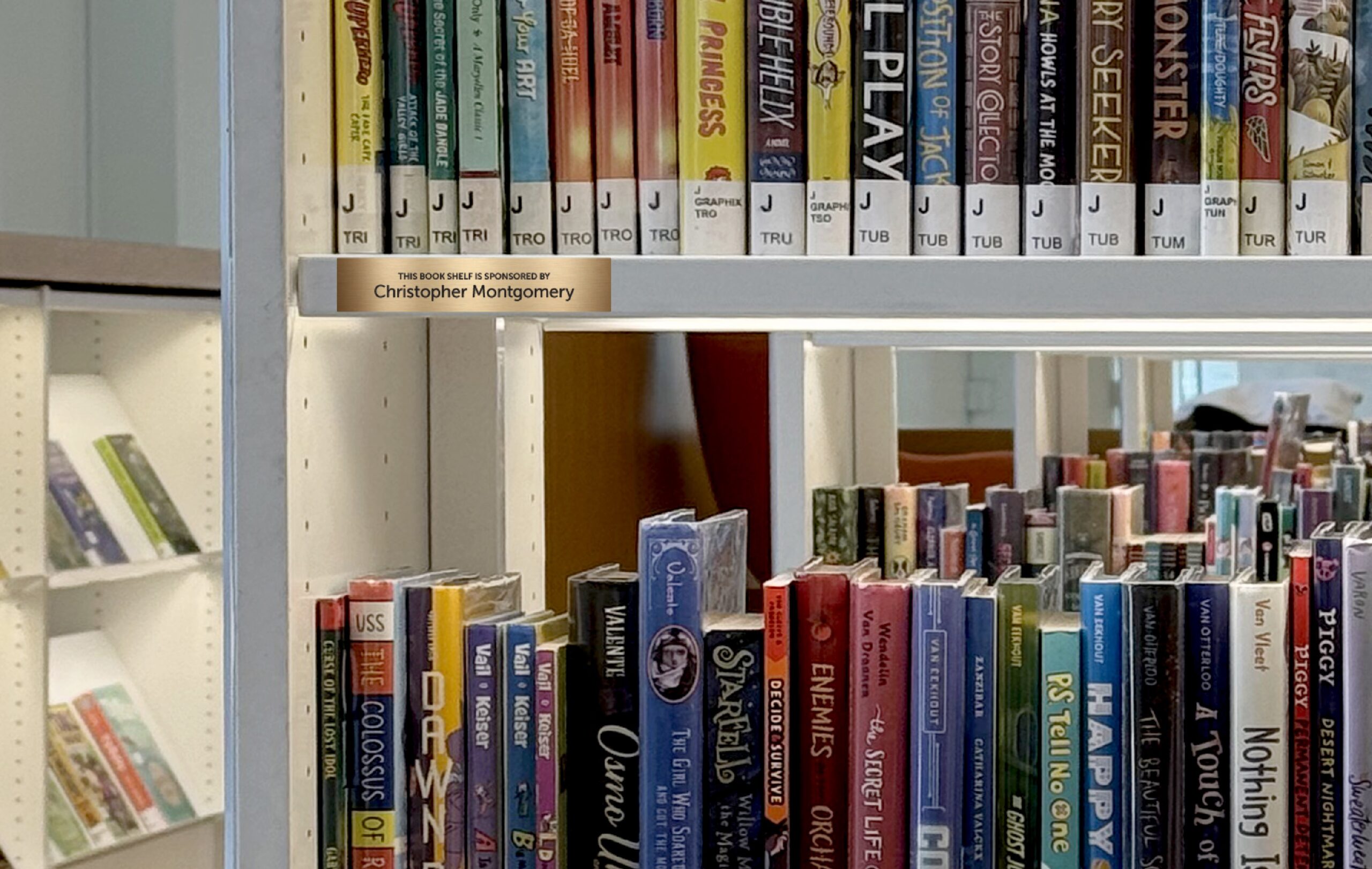 Select your preferred Library location and collections area (either fiction, non-fiction, children’s books, or teen books) and a plaque recognizing your sponsorship will be installed on a bookshelf—or a full bookcase—for a ten-year term.